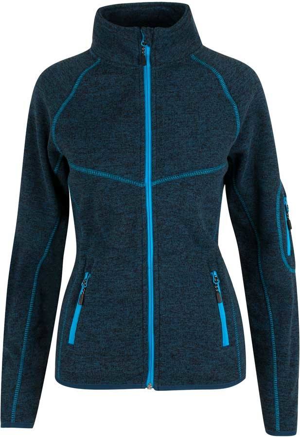 Figursyet fleece cardigan til Kvinder, i smart meleret denimblå, med dekorative flatlock sømme og kontrast detaljer i klar turkis.