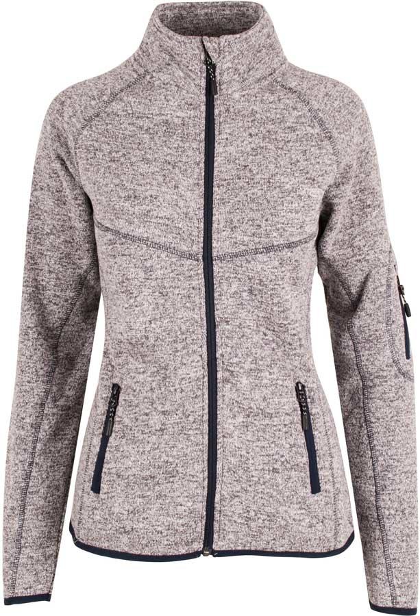 Figursyet fleece cardigan til kvinder, i flot grå melange, med dekorative flatlock sømme og kontrast detaljer i klassisk navy blå.