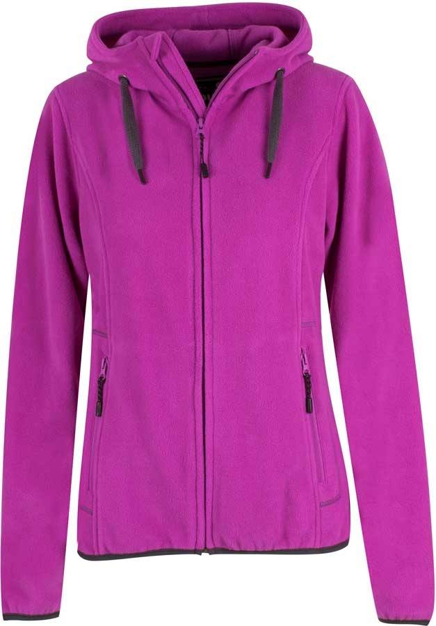 Lækker lynlås-hoodie i lilla fleece, med justerbar snøre i hætten, dekorative fladlock sømme og grå detaljer.