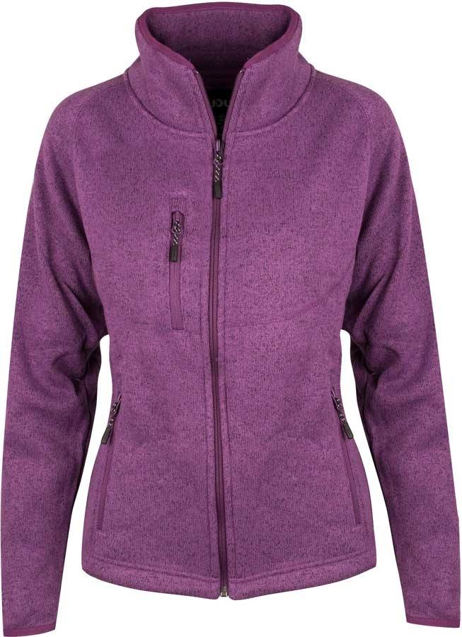 Fleecejakke til kvinder, i flot meleret lilla, med dekorative pyntesømme og detaljer.