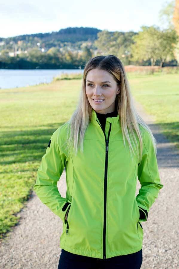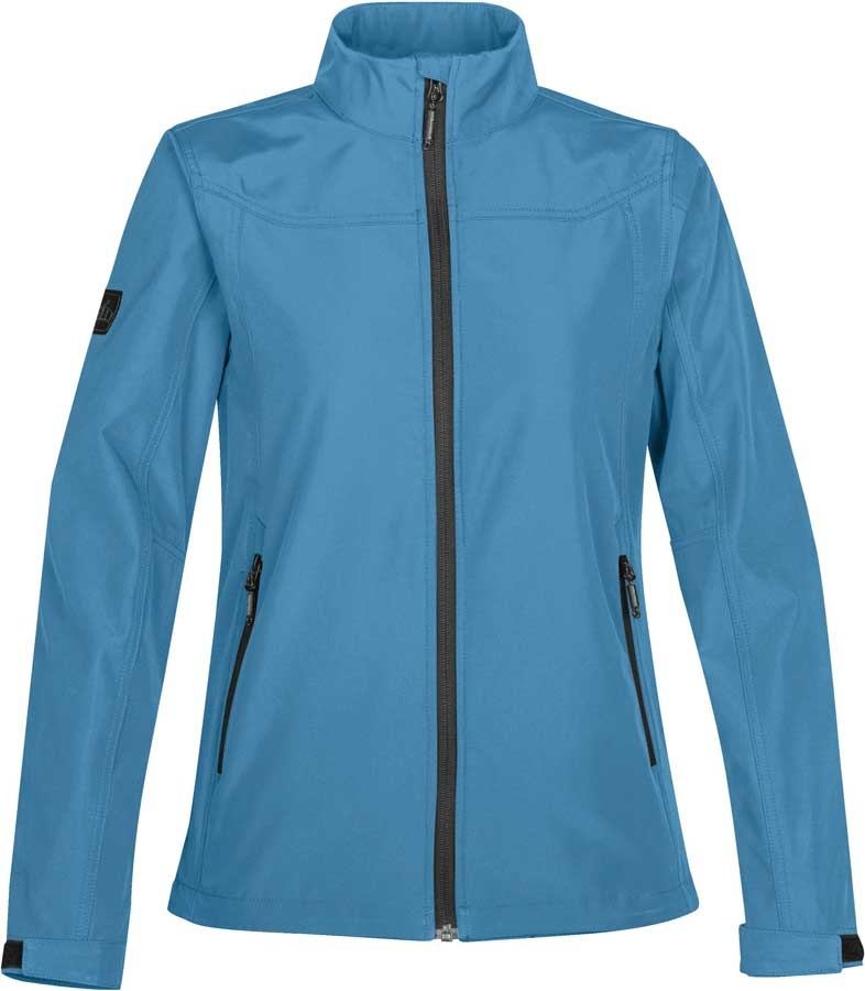 Blå, stilfuld dame softshell jakke i klassisk design. Jakken har 2-lags vandafvisende yderskal, den er åndbar og lavet til at holde dig varm.