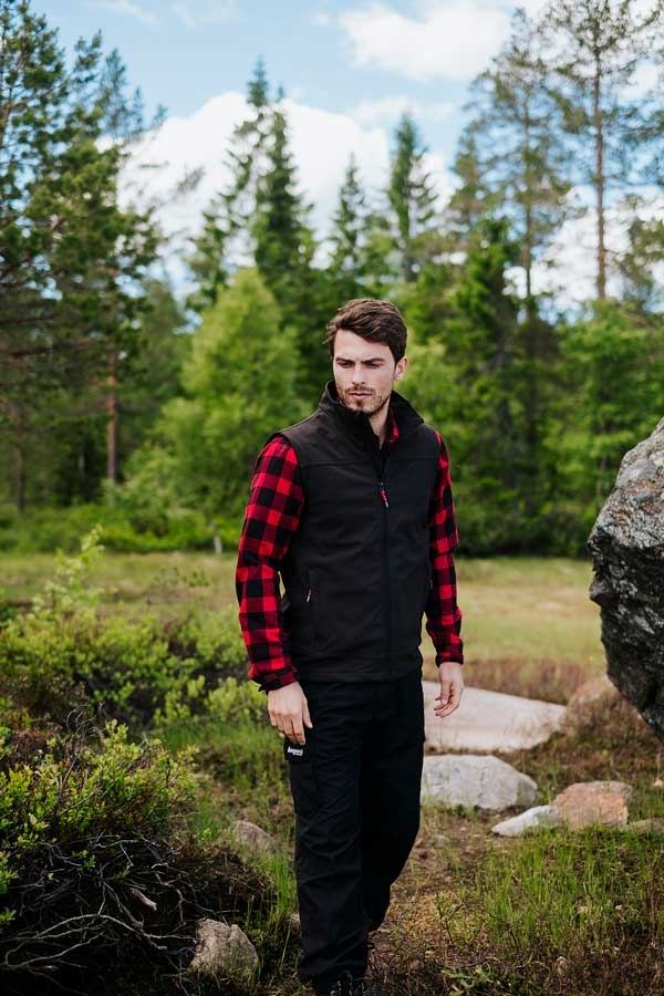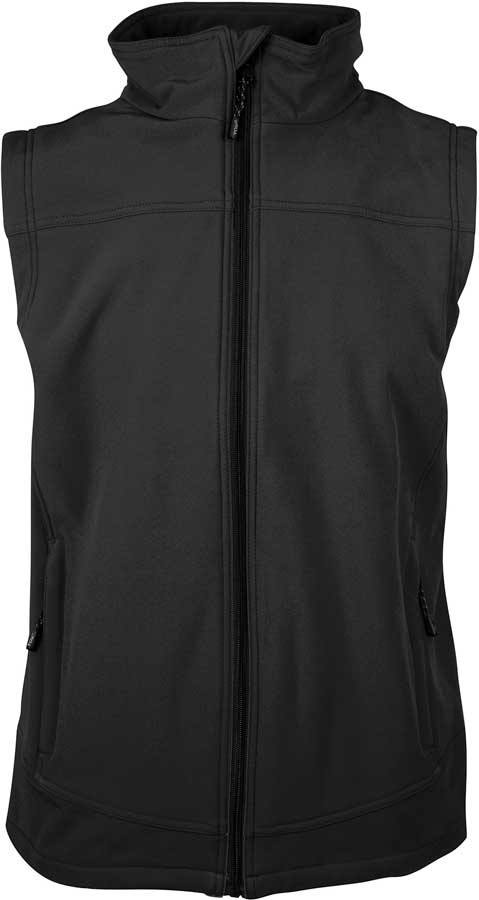 Klassisk sort unisex softshell vest med stretch. Vesten har 2 praktiske lommer foran med lynlås, regulerbar linning og
