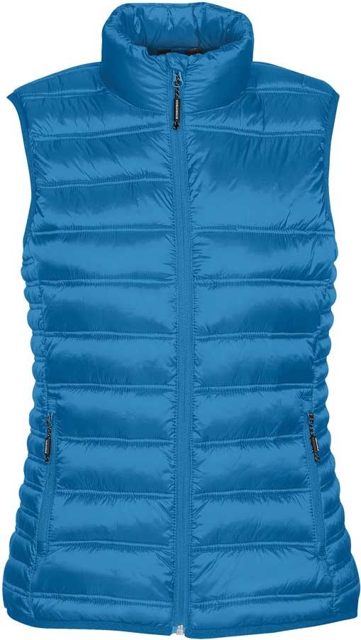 Lækker blå vatteret vest til kvinder. Vesten er vandafvisende og ultralet. Den er lige til at pakkes sammen i den ene sidelomme.