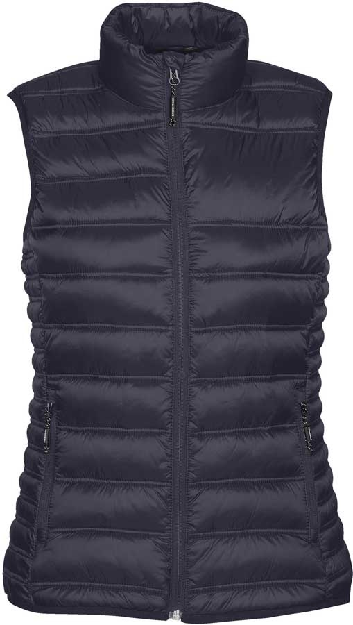 Lækker navy blå, vatteret vest til kvinder. Vesten er vandafvisende og ultralet. Den er lige til at pakkes sammen i den ene sidelomme.