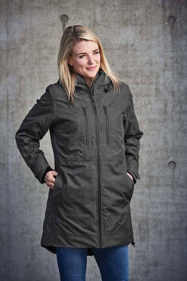 Moderne Koksgrå termisk dame-parka med STORMTECH H2XTREME® vandtæt/åndbar yderskal, som kombineret med forseglede sømme, giver langvarig beskyttelse mod vejr og vind.