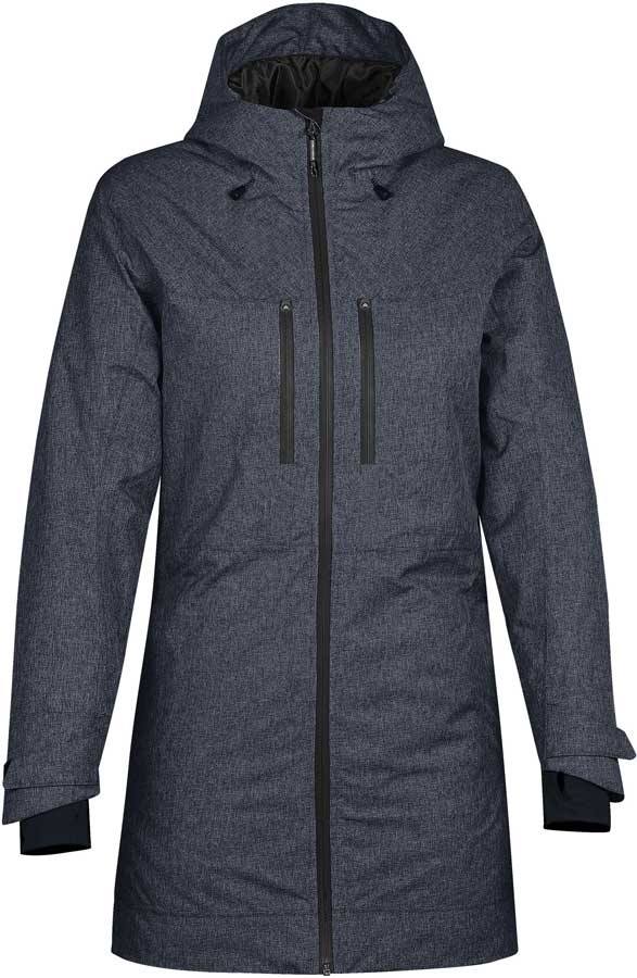 Moderne navy blå melange termisk dame-parka med STORMTECH H2XTREME® vandtæt/åndbar yderskal, som kombineret med forseglede sømme, giver langvarig beskyttelse mod vejr og vind.