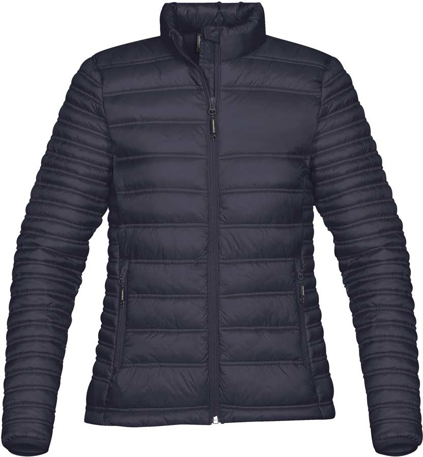 Lækker navy blå, vatteret jakke til damer. Jakken er vandafvisende og ultralet. Den er lige til at pakke sammen i den ene sidelomme.