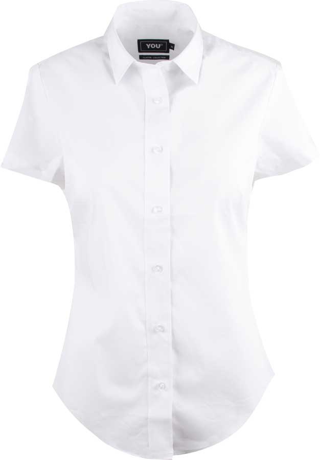 Let hvid figursyet stretchskjorte med korte ærmer til kvinder.