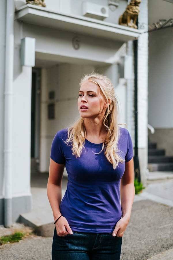 Tip: Tag en T-shirt som sidder godt og læg den fladt ud på et bord og mål den fra armhule til armhule. Double målet op og brug dette mål som en guide til hvilken størrelse du skal bestille.