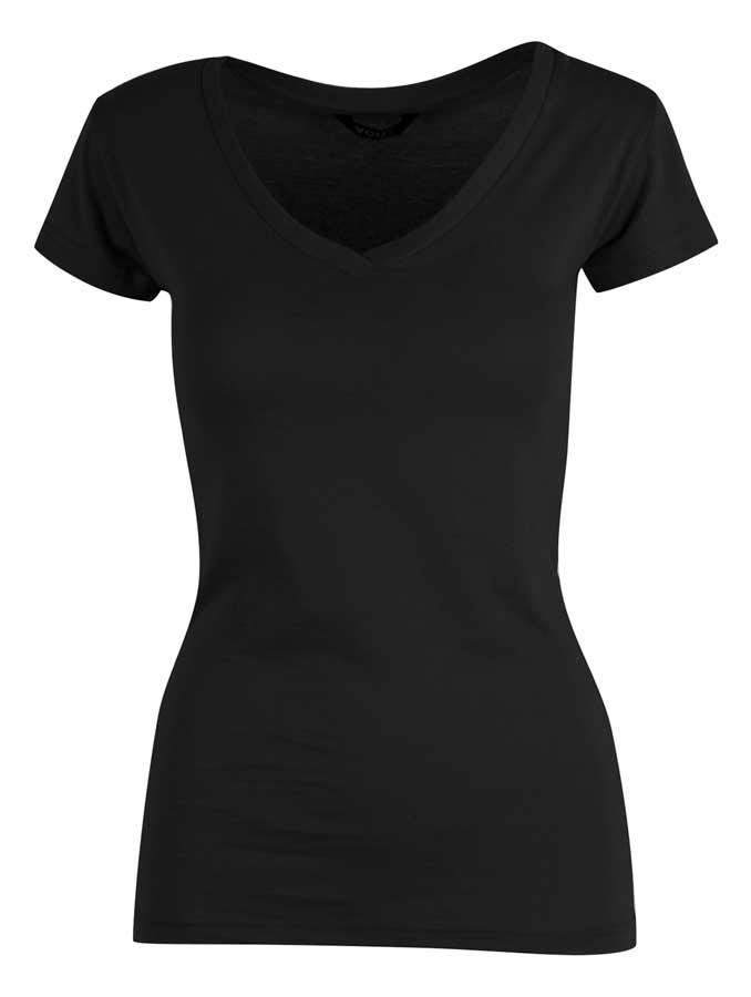 Sort basis bomulds T-shirt med V-hals til kvinder.
