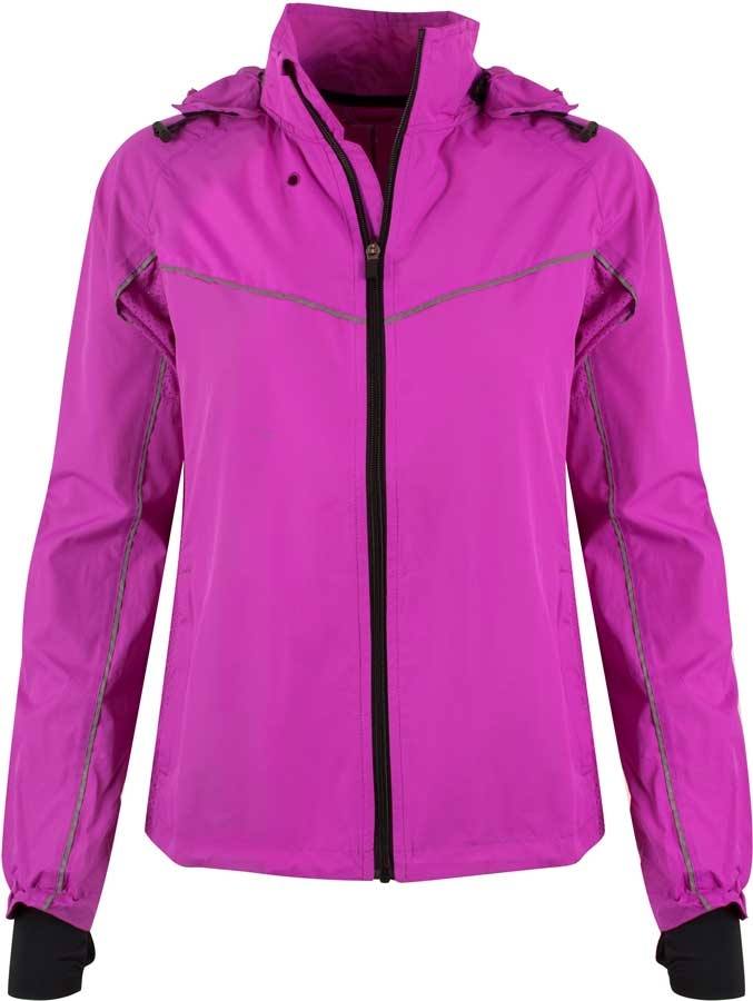 Let faconsyet løbe- / træningsjakke til kvinder i flot lilla, der gør dig ekstra synlig, med mesh i siderne for optimal ventilation og reflekspiping.