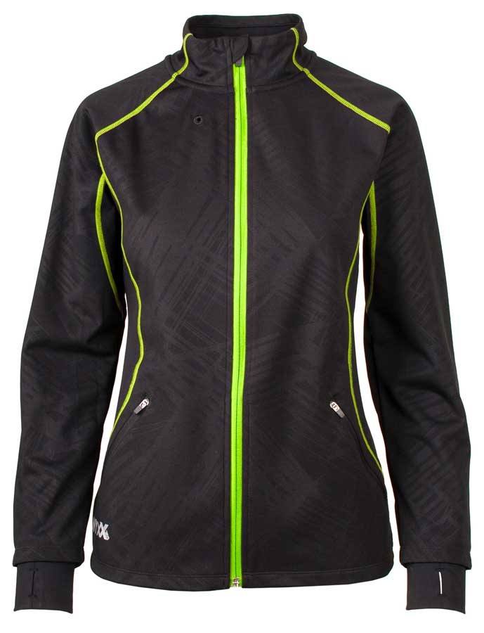 Klassisk sort Pro-Dry træningsjakke til kvinder med fede neon gule detaljer, reflekser og SBS lynlåse.