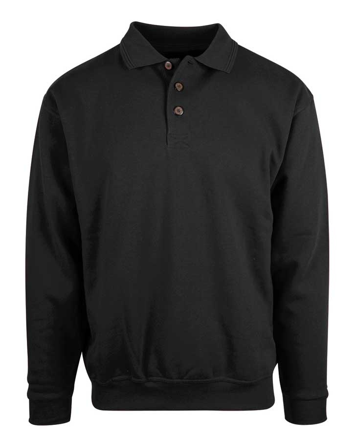 Klassisk sort polo-sweatshirt i lækker slidstærk jersey med dobbelte sømme og med blød børstet inderside. Polo-sweatshirten er i jersey kvalitet.