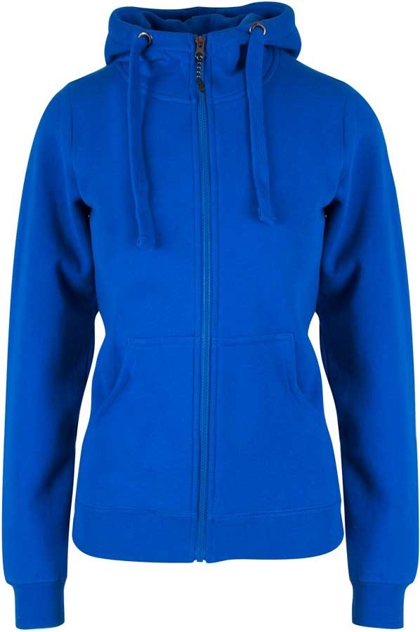 Dejlig kornblå hættejakke til kvinder. Jakken er dobbelt jersey strikket og med børstet blød inderside. Jakken er figursyet. Den er med rib-kant på ærmerne samt forneden på jakken. Ribben er med lycra.