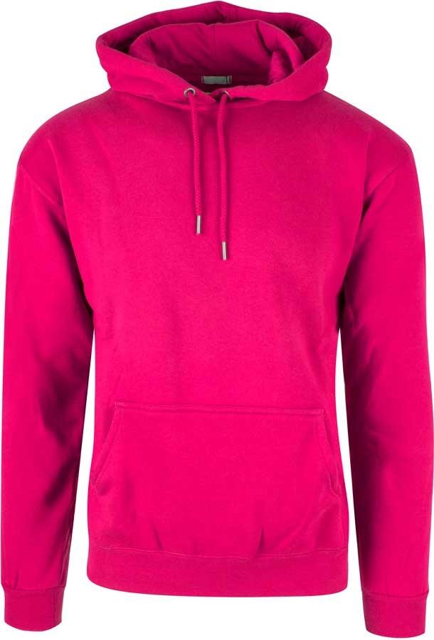Hindbærrød hoodie i dobbeltstrikket jersey med børstet blød inderside og forstærkede sømme. Hætten er foret og med snøre, så den kan reguleres.