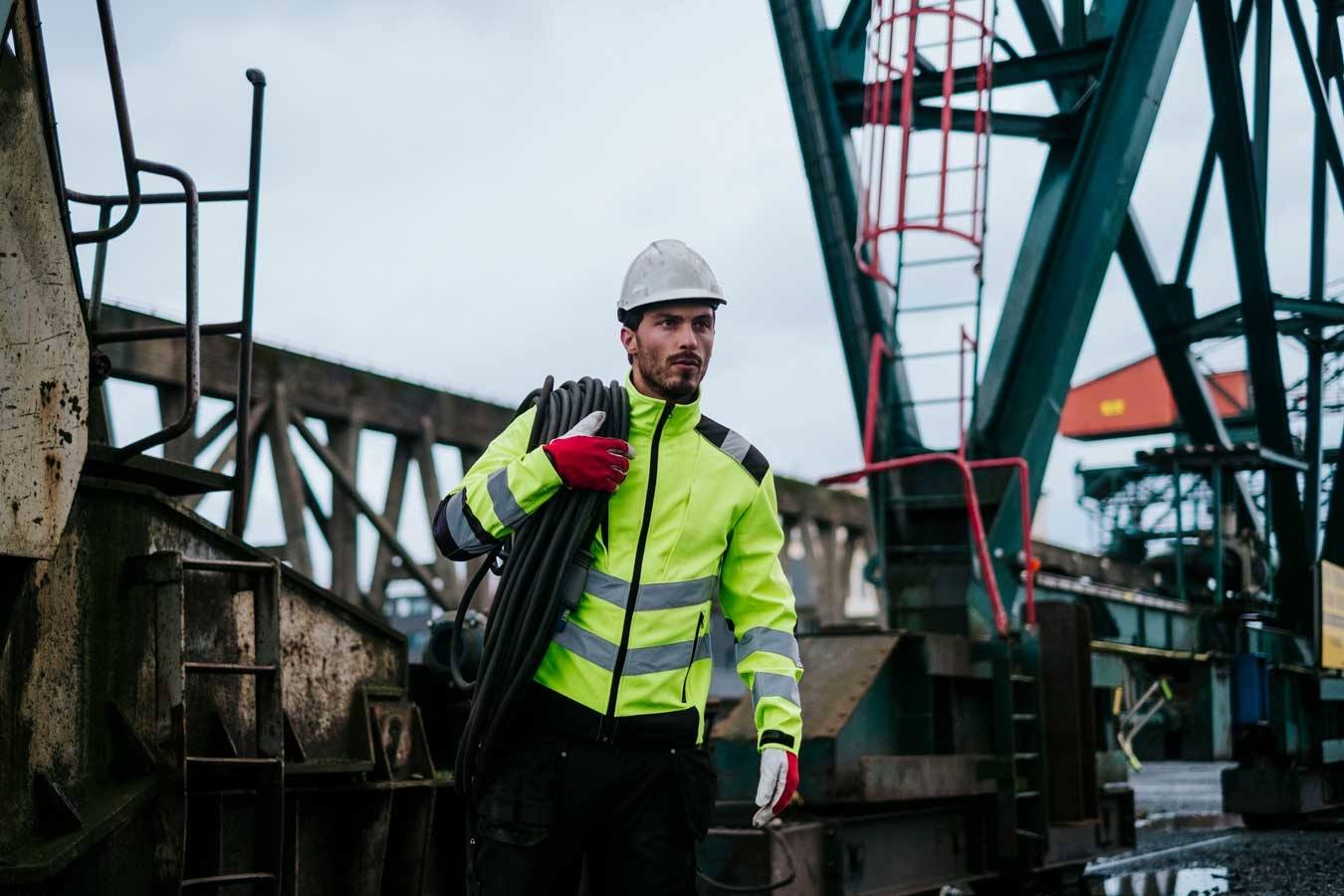 Softshell jakke med påsyede reflekser om livet, på skuldrene og ærmerne, der gør dig ekstra synlig i omgivelserne.