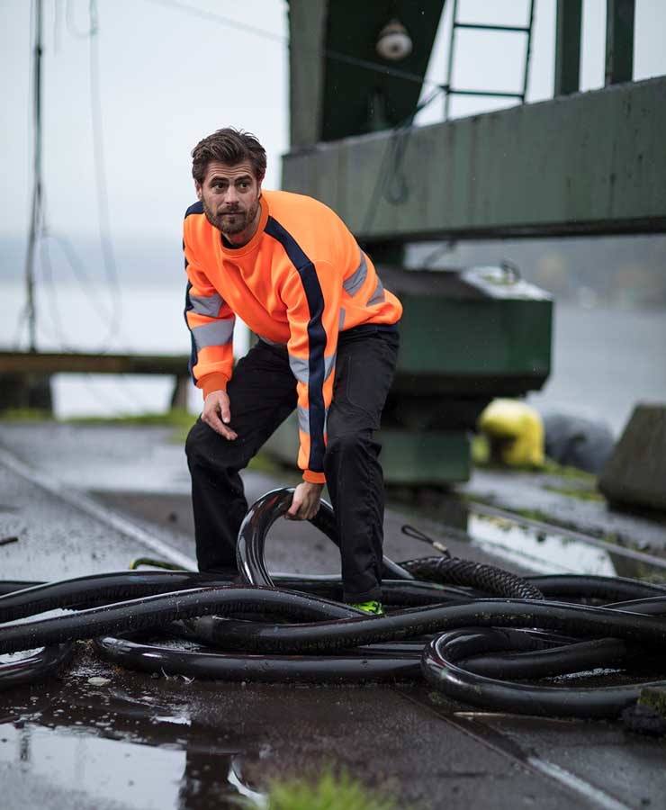 2-farvet unisex sweatshirt med påsyede reflekser om livet og ærmerne.
