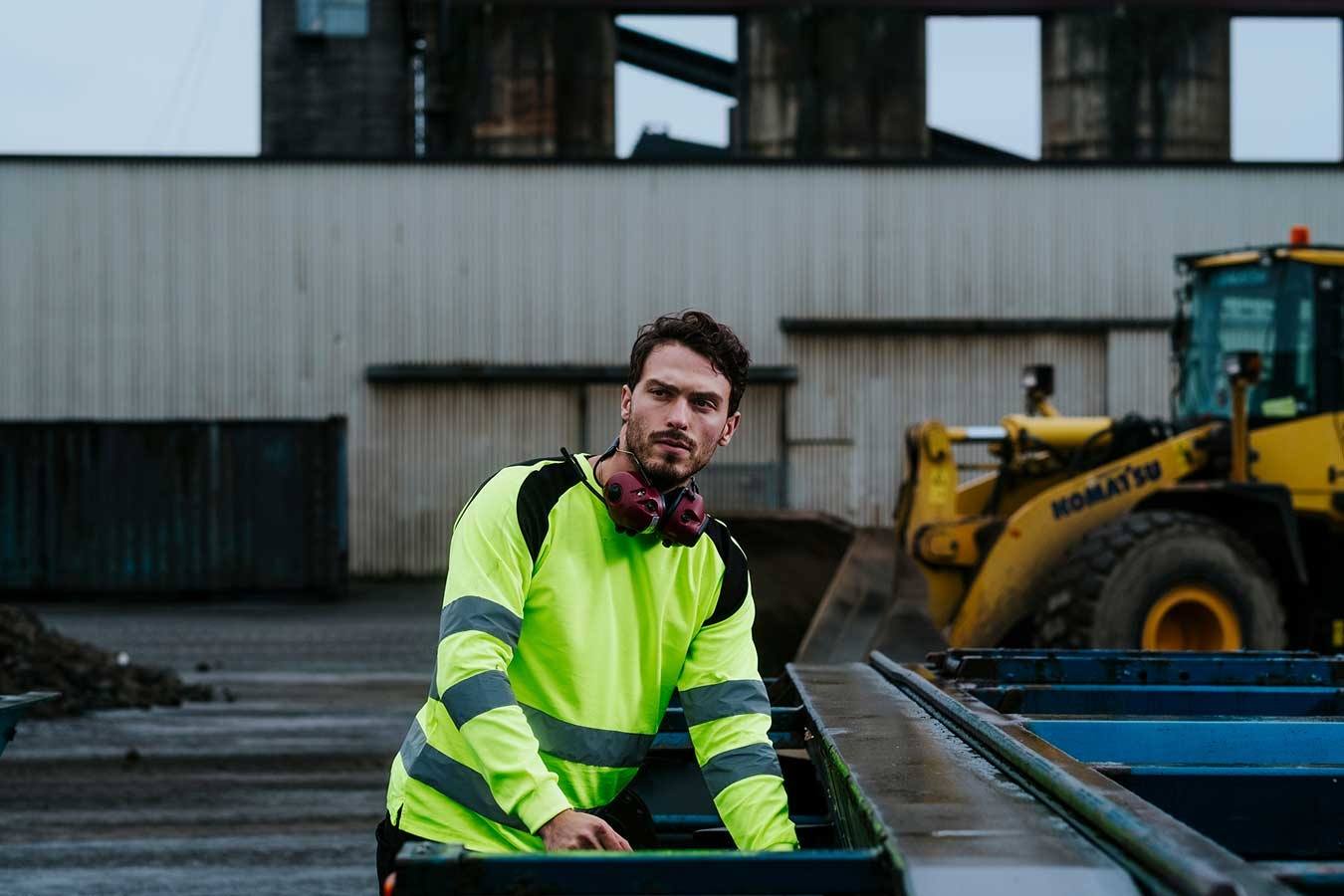 Blusen er neon gul med påsyede reflekser om livet og på ærmerne, der gør dig ekstra synlig for omgivelserne.