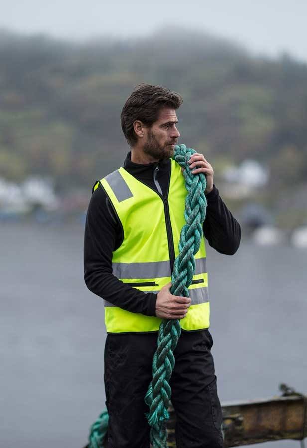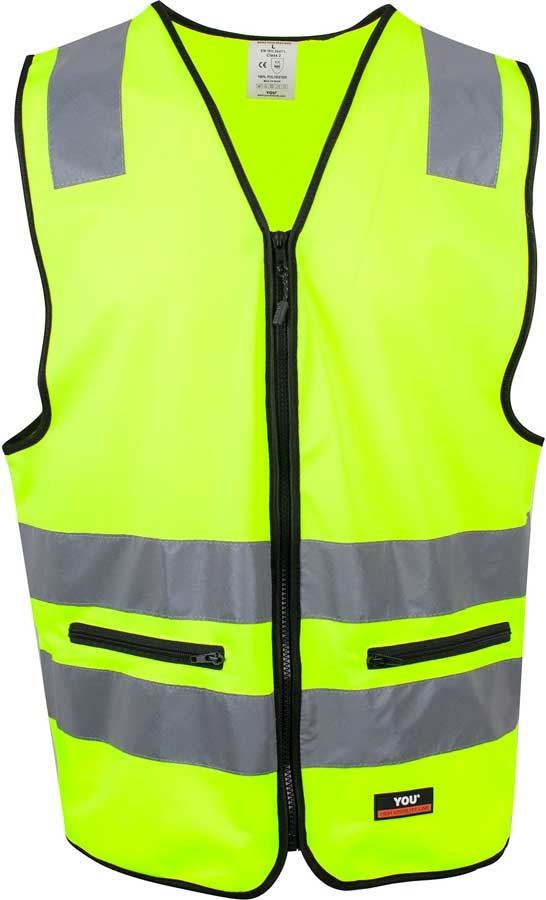 Neon gul unisex refleksvest til arbejdsbrug, med påsyede reflekser om livet og på skuldrene.