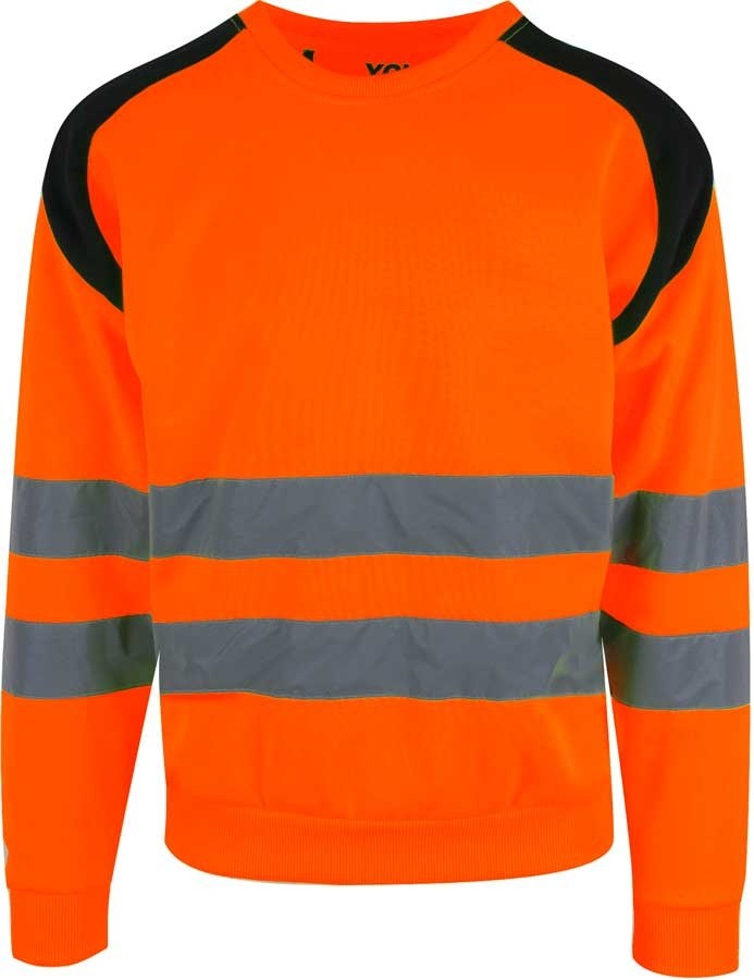 Basic unisex sweatshirt i neon orange med navy blå kontrastpaneler på skuldrene.