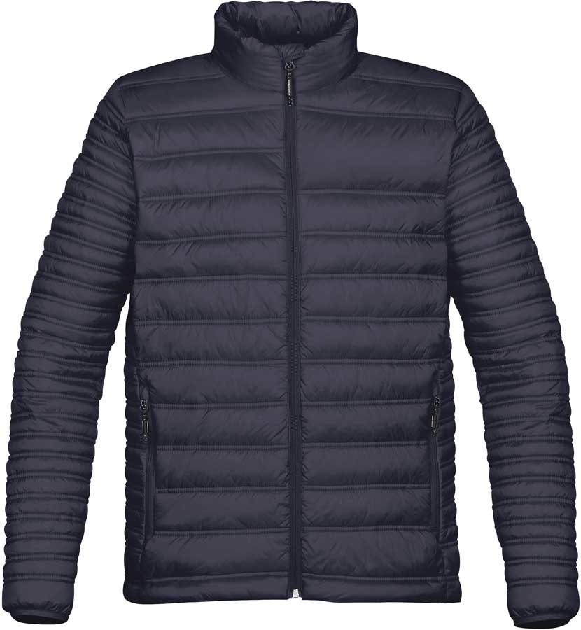 Lækker navy blå, vatteret jakke til mænd. Jakken er vandafvisende og ultralet. Den er lige til at pakke sammen i den ene sidelomme.