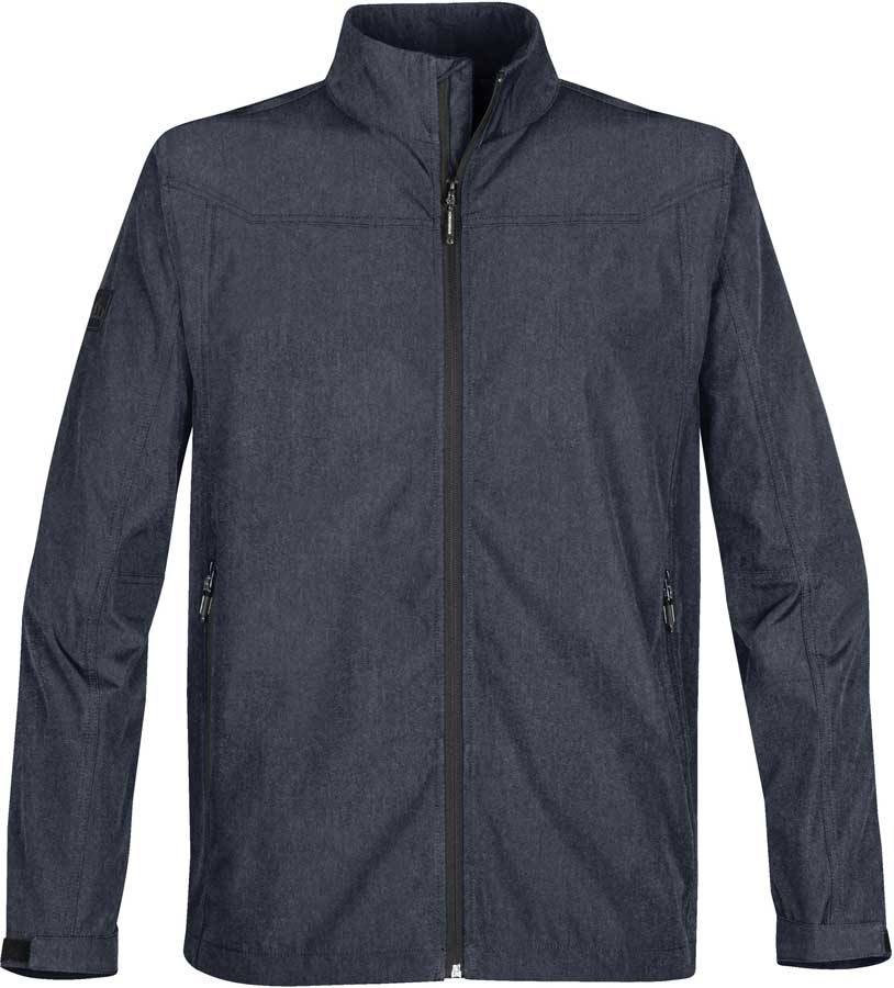 Meleret navy blå, stilfuld softshell jakke i klassisk design. Jakken har 2-lags vandafvisende yderskal, den er åndbar og lavet til at holde dig varm.