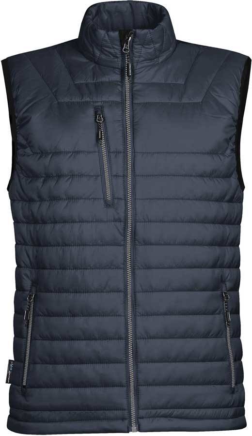 Ultralet vandafvisende termisk vest til mænd i lækker sort med flotte koksgrå lynlåse. Overfladen er behandlet med D/W/R der ud over at være smudsafvisende, holder dig varm og tør.