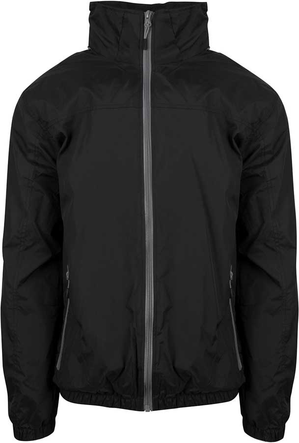 Flot unisex windbreaker i klassisk sort, med grå lynlås og kontrastfarvet for.
