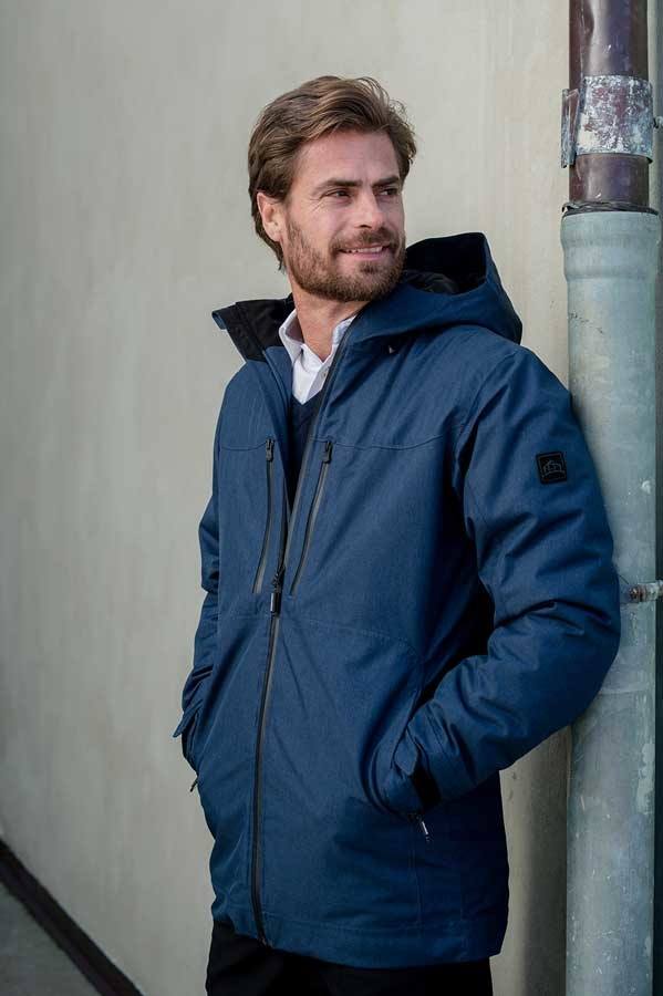 Moderne navy blå melange termisk parka med STORMTECH H2XTREME® vandtæt/åndbar yderskal, som kombineret med forseglede sømme, giver langvarig beskyttelse mod vejr og vind.
