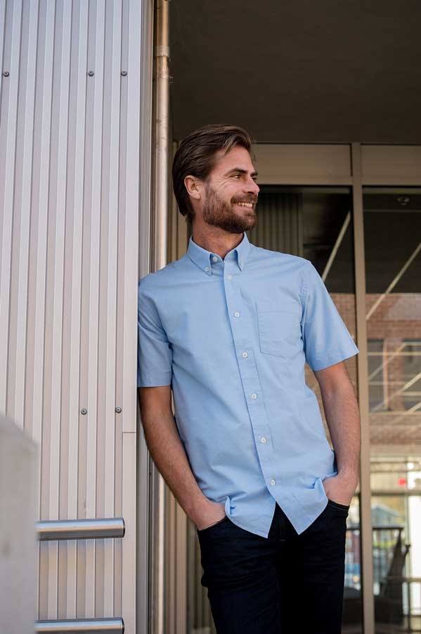 Flot lyseblå Oxfordskjorte med korte ærmer til mænd. Herreskjorten er syet i en lækker blød og slidstærk bomulds kvalitet.