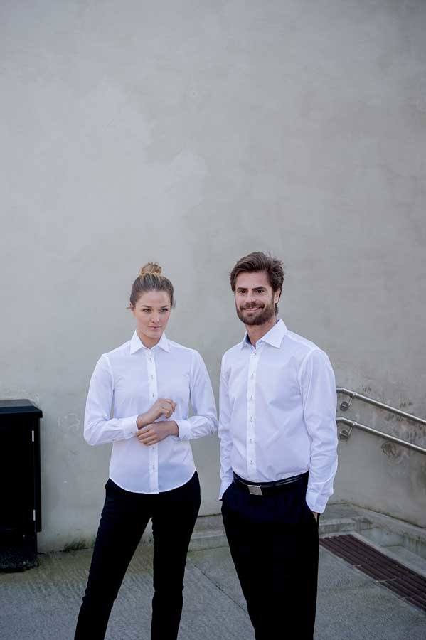 Skjorten har udtagelige flipstivere og et klassisk look der gør sig godt i professionelle situationer.