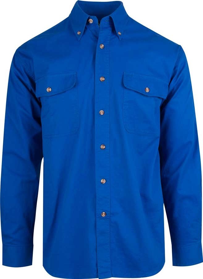Lækker og slidstærk kornblå twillskjorte med lange ærmer til mænd.