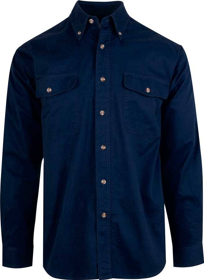 Lækker og slidstærk navyblå twillskjorte med lange ærmer til mænd.