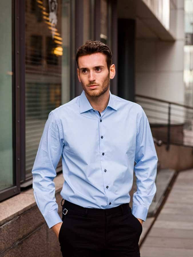 Skjorten har et meget klassisk look og lange ærmer, som passer godt til både fest og fritid.