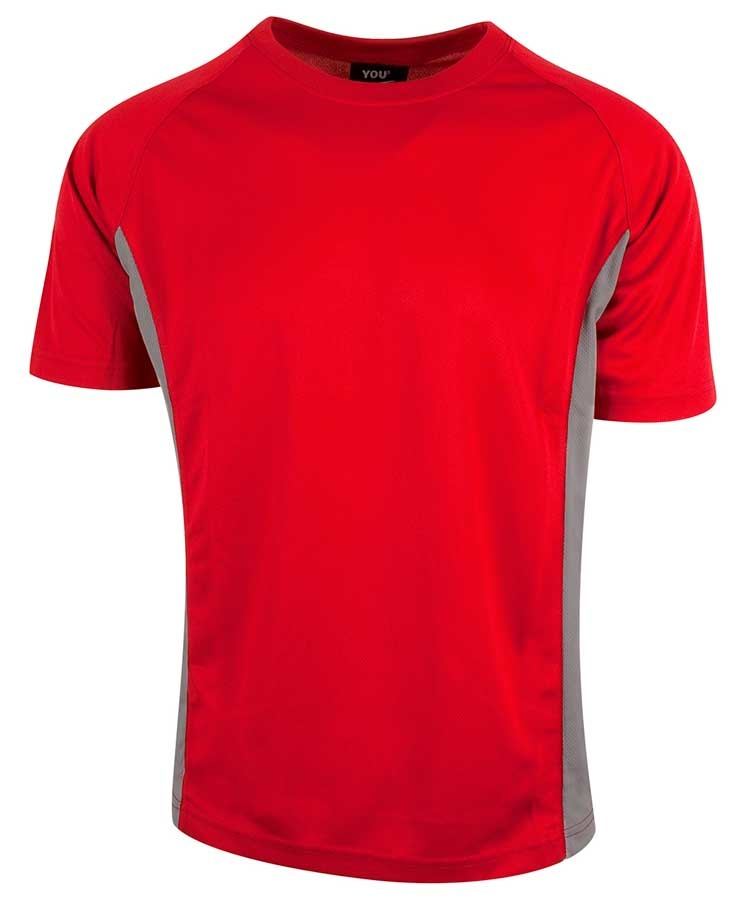 Rød/grå Pro-Dry kontrast T-shirt - YOU