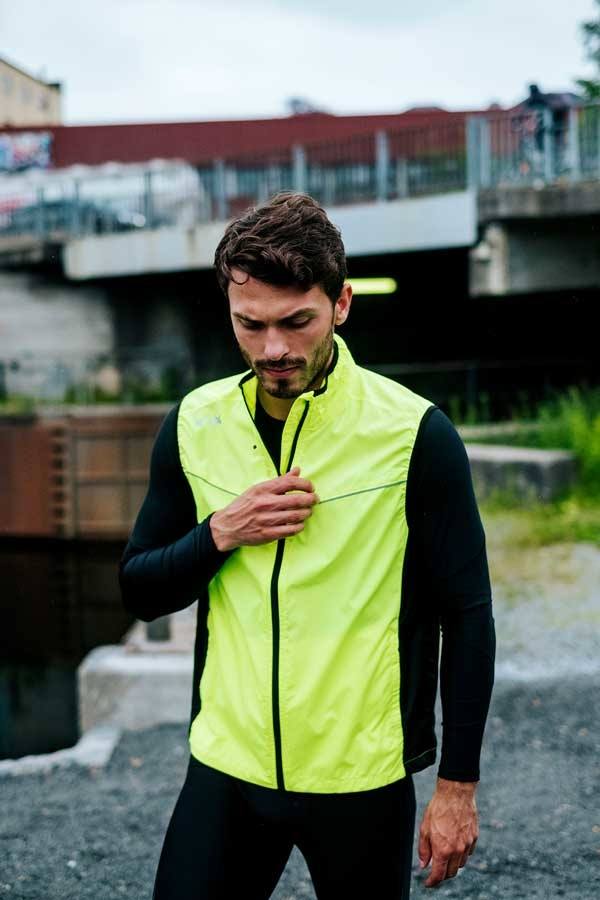 Vesten har mesh i siderne for optimal ventilation, reflekspiping - der gør dig mere synlig i trafikken, og to stiklommer med lynlås.