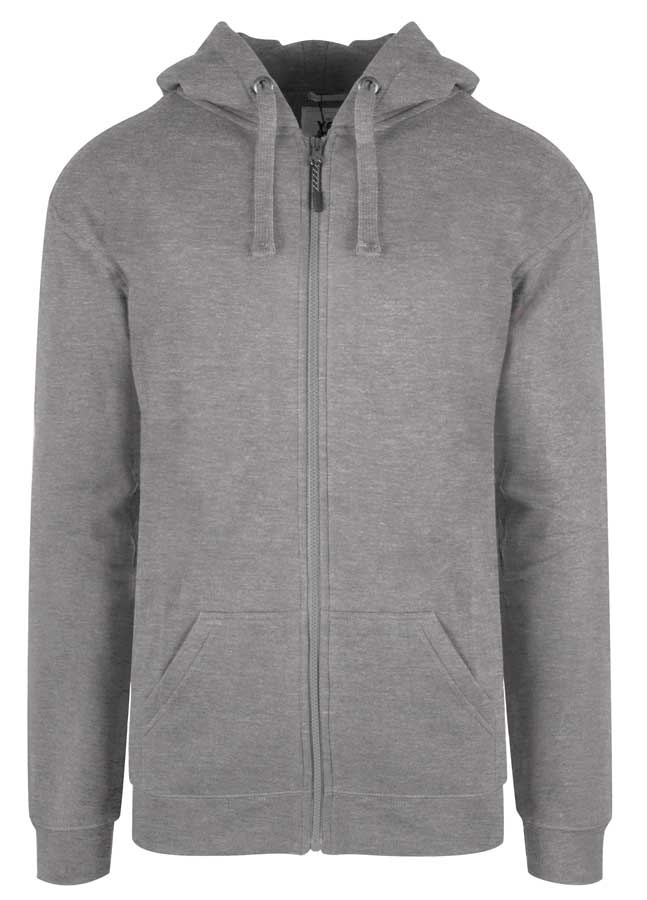 Dejlig hættejakke i grå-melange. Jakken er dobbelt jersey strikket og med børstet blød inderside. Der er rib-kant på ærmer og forneden på jakken og ribben er med lycra.