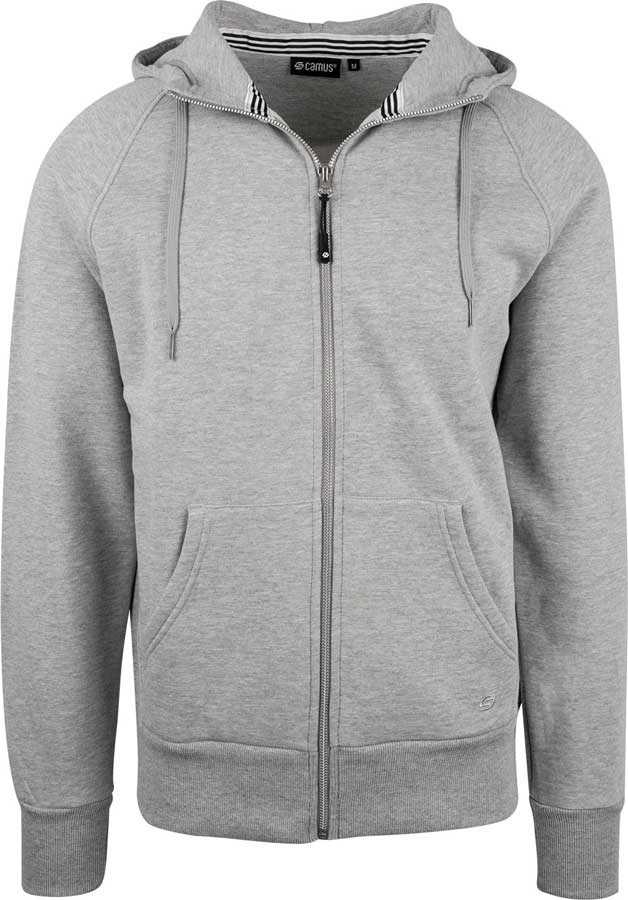 Klassisk grå-melange sweatjakke med hætte til mænd. Jakken er dobbelt jerseystrikket.