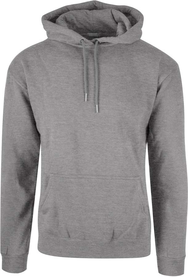 Grå-meleret hoodie i dobbeltstrikket jersey med børstet blød inderside og forstærkede sømme. Hætten er foret og med snøre, så den kan reguleres.