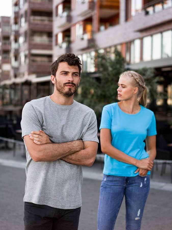 Kornblå interlock bomulds T-shirt til mænd.